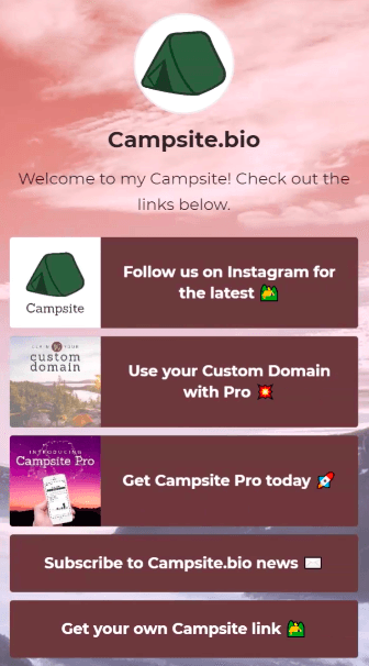 Campsite is one of the newer Instagram bio apps to the scene, but that doesn’t mean it is any less amazing. The app is very affordable, offering a limited free version and a “pro” one at $7 a month for up to three different profiles. The highlight of Campsite seems to be the additional customizable options they offer with features such as access to stock images from unsplash.com, MailChimp integration, and Facebook Pixel retargeting options.