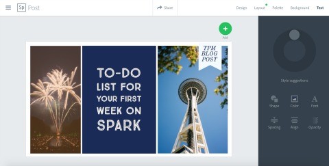 Spark Page allows users to layout their favorite photos and information in a creative and unique way and share them with the world. Think of it as your own simplified web page. Users can upload photos from their own devices, cloud storage or use stock photography. You can then add motion or text to make a fun and informational viewing experience. Spark Page works great for showcasing products, events or for sending out your weekly newsletter.