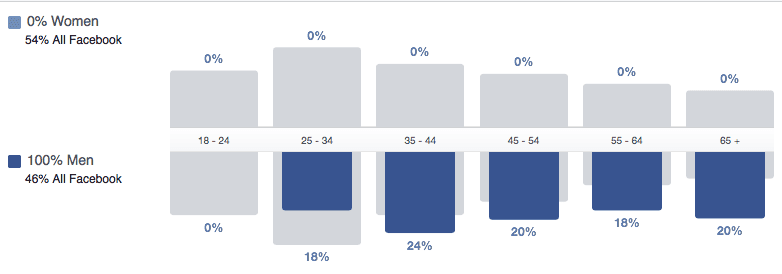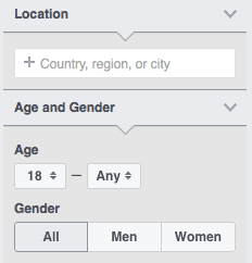 First, Facebook will prompt you to refine the location of the audience you want to research. Facebook defaults to the U.S. which you can change, or further refine by selecting a state or city. Next you will be asked to refine via gender and age.