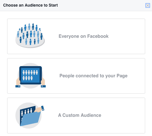 For this example, we are going to use Everyone On Facebook for our starting audience, but the steps we will take are similar whether you select People Connected To Your Page or A Custom Audience.