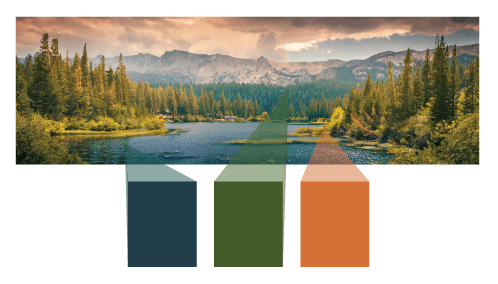 The colors we find in nature might not always fit into a technical version of a 12-color wheel but they are harmonious nonetheless. In the example below we can see how the green from the trees, provides a beautiful contrast from the blue water. While the orange we find in the flowers provides a pop of color.