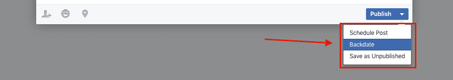After filling in the information for your video, click on Publish in the bottom right and select Backdate.