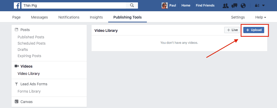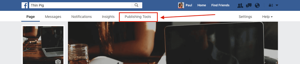First, while managing your page as an admin, go to Publishing Tools.