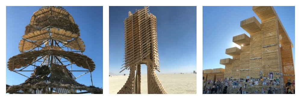 The art is pervasive. There was art in the way people dressed, created, decorated, and communicated. The actual installations were amazing. Many, if not all, of the wood structures, were burned at the end of the event. I spent countless hours on the playa with friends and alone, exploring the art. New installations appeared and left regularly. My three favorite pieces: Folly, The Temple, and Temple of Brad Pitt (deliciously weird, in which you can climb into a metal suit and channel Brad Pitt).