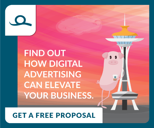 Let’s take a look at one of our digital ads and see how we’ve implemented the practices above. In the following ad we’ve created a bright yet simple background that will easily stick out on almost any webpage. The value proposition is short and easy to comprehend and there is a distinct call to action. Instead of using our full logo, we’ve taken only the pig tail and included it in the top corner. It is okay not to use the full logo within this specific ad because the content describes our business and once a customer clicks, they will be directed to our landing page that will clearly define our brand and who we are.