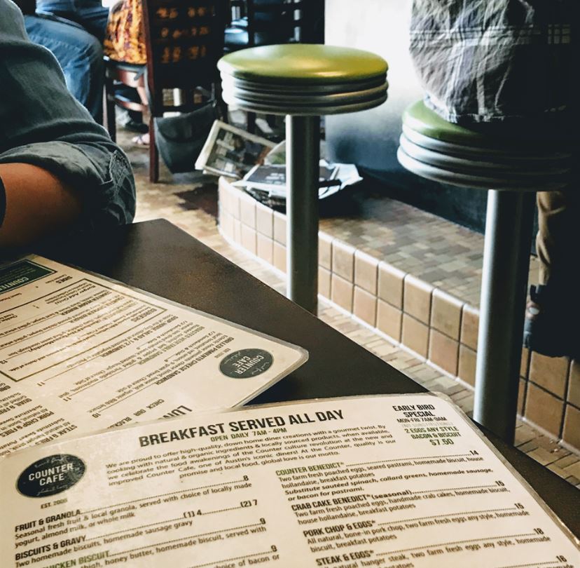 Counter Cafe - This little gem is an American diner that serves breakfast and lunch and was featured on Diners, Drive-ins and Dives. Here you can get breakfast tacos, Eggs Benedict, one of the best burgers in Austin, and much more. They also offer a Happy Hour on weekdays. Pro tip: As a native Texan, I highly recommend the breakfast tacos.
