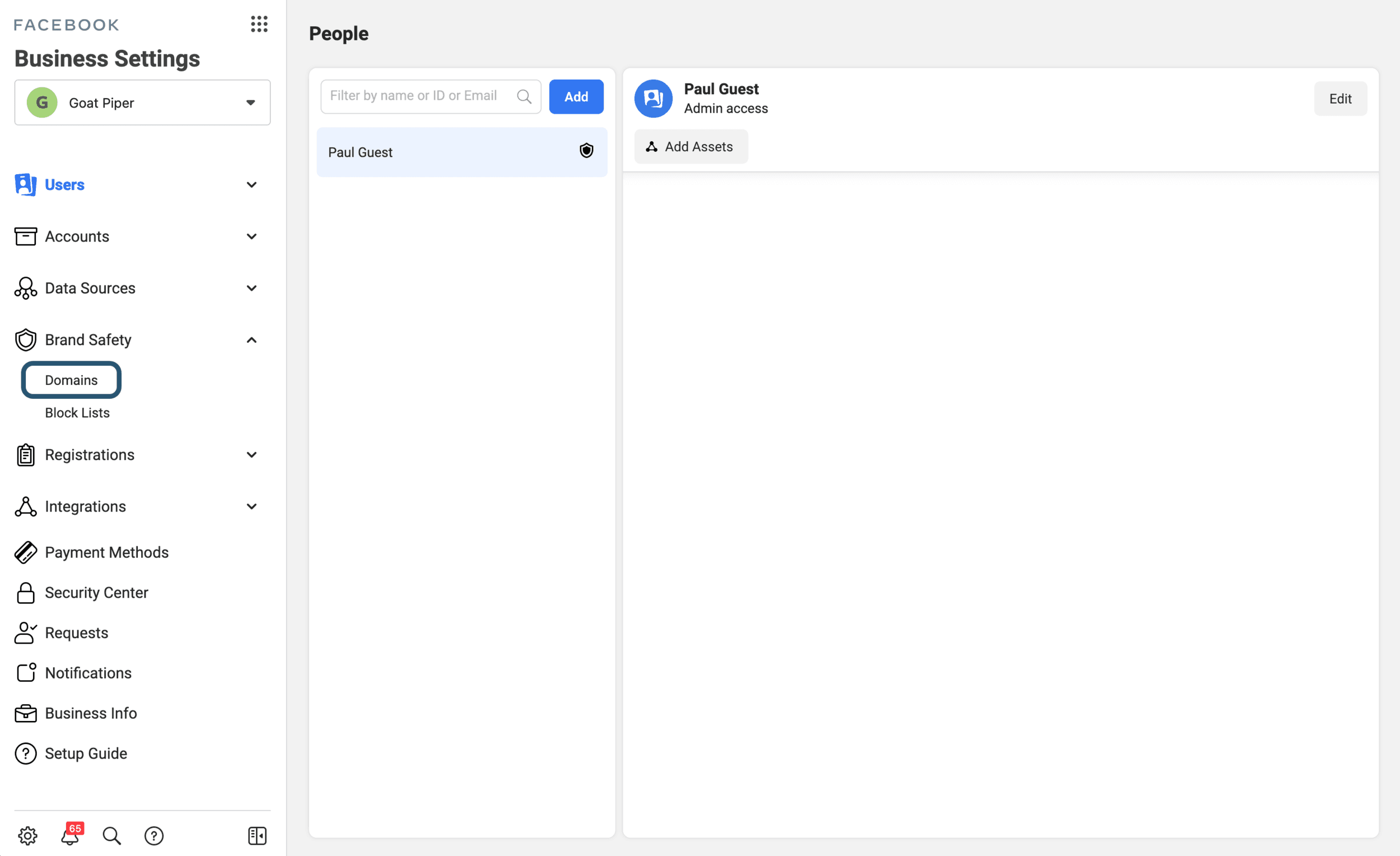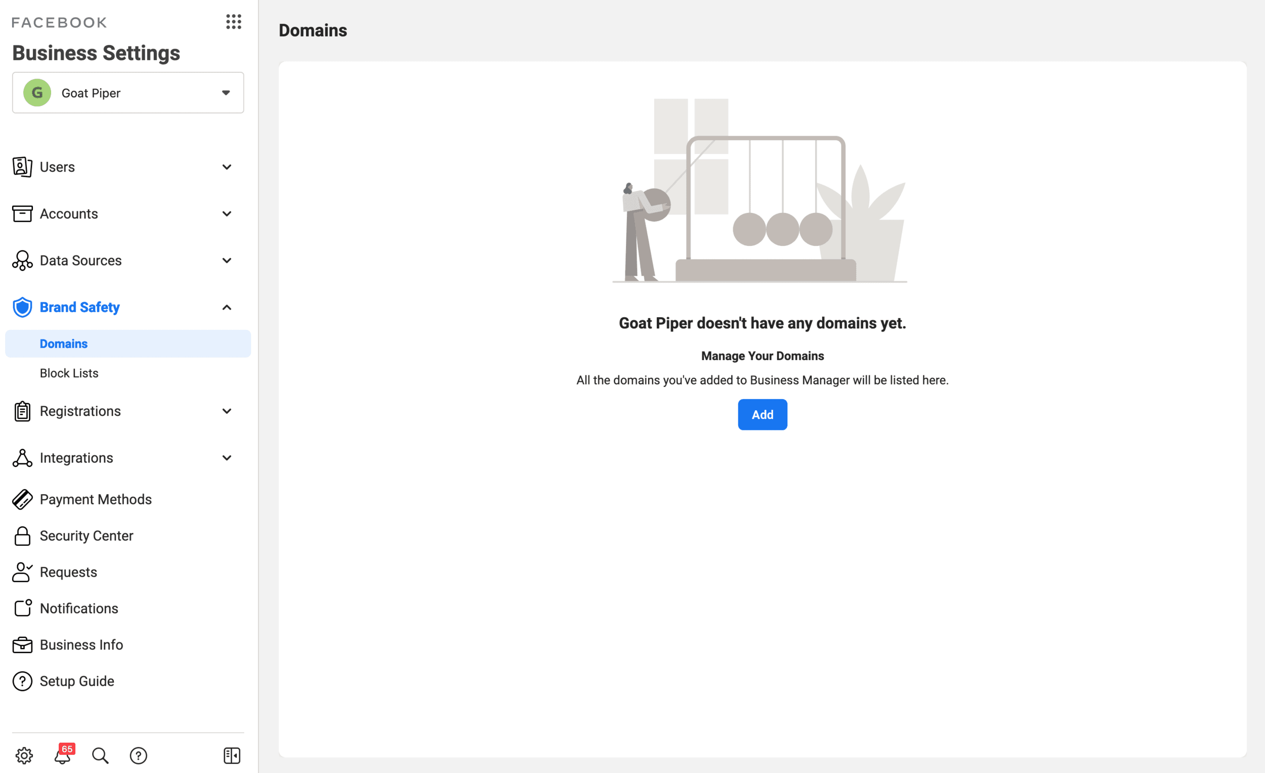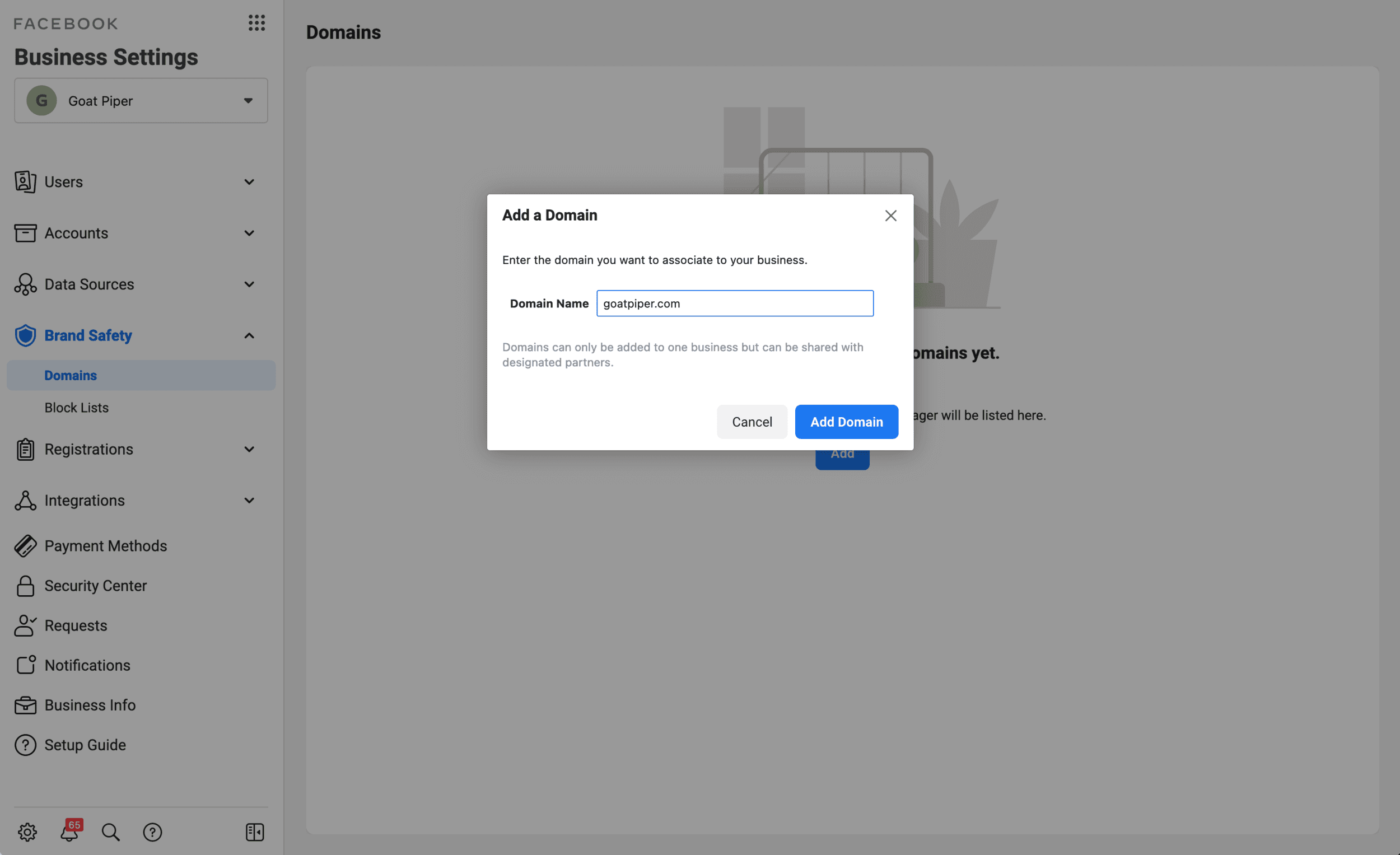 3. If you have not previously set up your domain, you will be prompted to add a domain to your Business Manager.