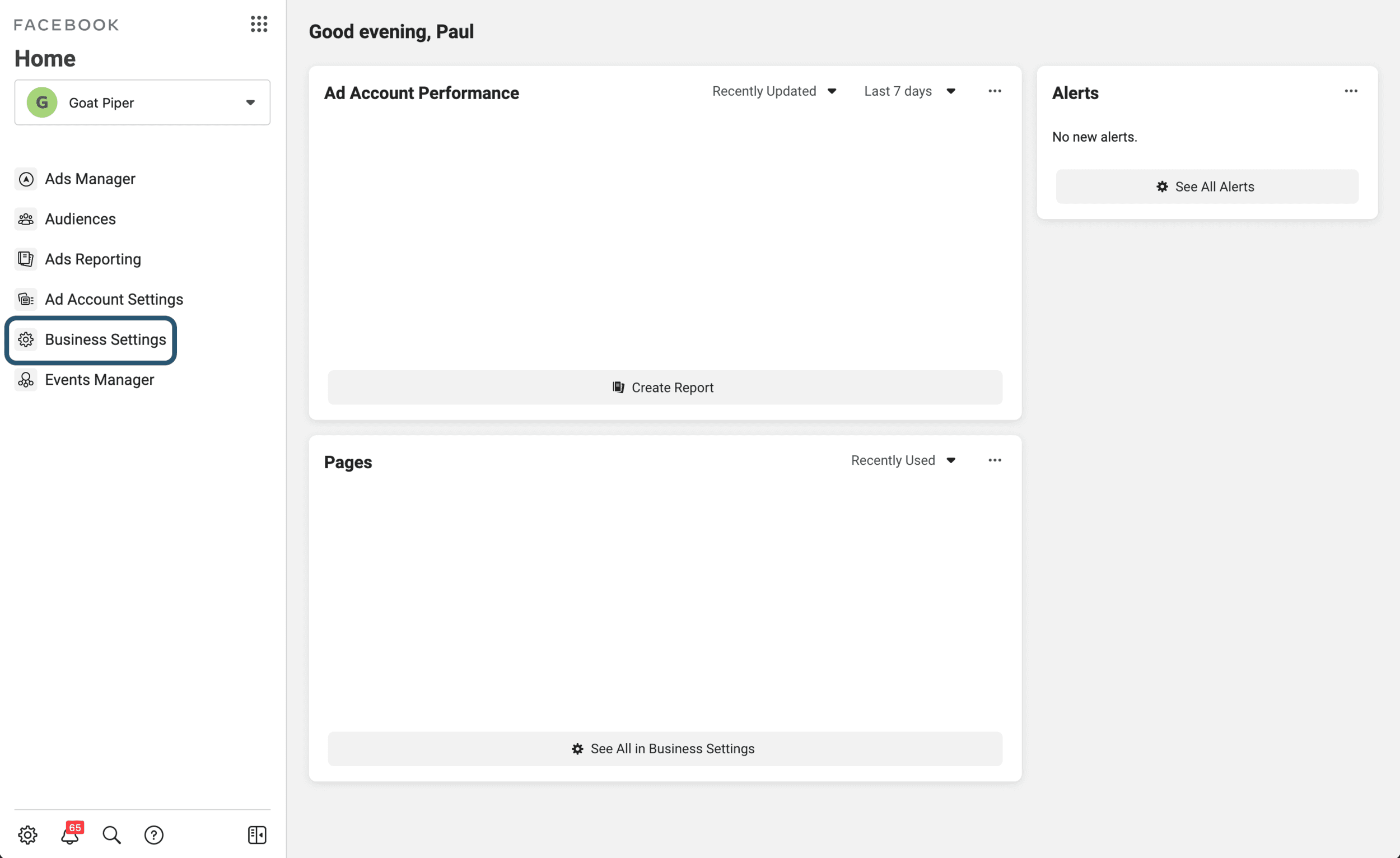 1. After logging into Business Manager, click on Business Settings on the left side of your screen. 1.