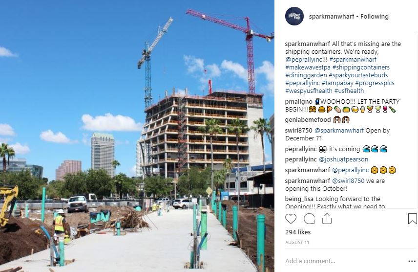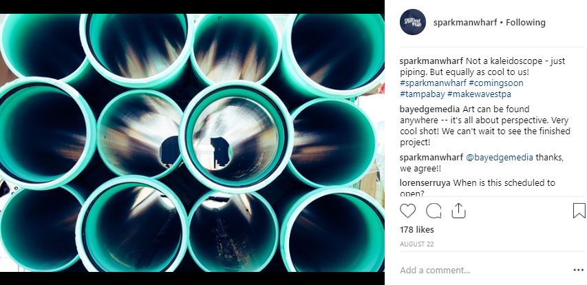 People love getting to see behind-the-scenes content or feeling like a VIP. When you provide details such as picking out cabinets, or something as simple as doorknobs, people feel like they’re along for the ride and feel more connected to the process. This also builds anticipation for the opening event. The new waterfront entertainment complex, Sparkman Wharf, in Tampa is a great example of a future business doing things right on Instagram. Follow @sparkmanwharf to see updates on their new construction, sneak peeks of upcoming vendors, and more.