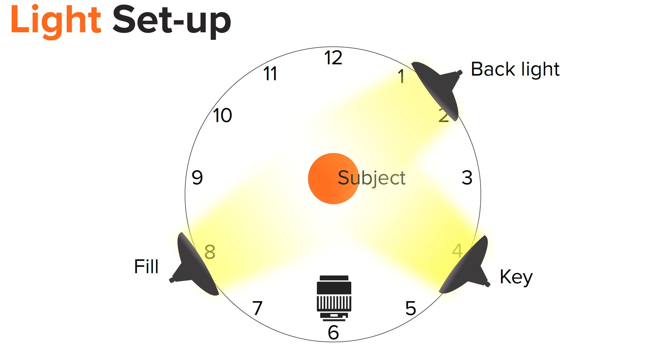 Videos are all about aesthetics. Having the proper lighting can make the difference between a captivating video and a dull one that gets overlooked. If you're featuring a person in your video, it's best to avoid overhead lights as those can create unwanted shadows. Instead, try placing three lights (also known as 3-point lighting) as shown in the example provided by techsmith.com below.