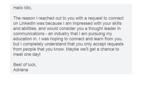 I’m guessing you’re like most people and, when you get a connection request with the default “invitation” message and you don’t know the person, you hit the IGNORE button.
