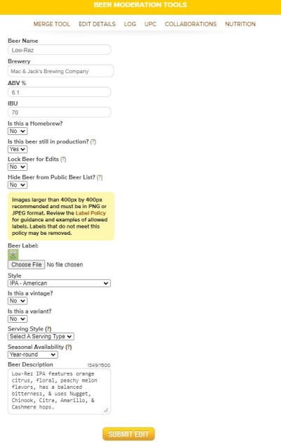 Find the beer you added and click “Edit”