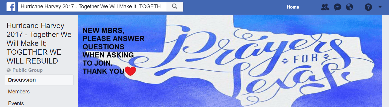 Also, since cellphone service was dicey during the storms, many people relied on Facebook and other networks instead of calling 911 as they normally would. Amie Swinford, an unofficial volunteer during Hurricane Harvey, was able to help those in Houston by using the Facebook group Hurricane Harvey 2017 – Together We Will Make It. "When you see that somebody has posted that they're on their roof with their one-, three- and four-year-olds and the water's up to the roof line, you have to be willing to make that phone call for them," she says. Winford, located north of Houston, contacted emergency services and sent out tweets on behalf of those who reached out in this group to help get them to safety (www.npr.com).