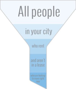 The first thing to know before any marketing or advertising campaign is who your audience is and where they’re located. When your product is an apartment, you inherently have different challenges than you would if you were selling a product like a television or a book or a piece of software. Instead of trying to target a very broad audience, the trick for successful apartment marketing is to whittle down your list to a very small number of people who are trying to rent your kind of apartment, in your city, right now. And that’s easier said than done.