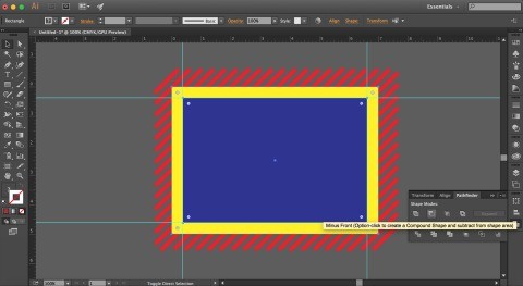 Now let's create a shape we can use for a clipping mask. First make a rectangle the size of our working area by choosing the rectangle tool (M) and clicking on the working area – then type in 7” w x 5” t. Next we will set rulers (Command R) 3/8” from the edges. Use the rectangle tool to make a new rectangle 6.25” w x 4.25” t and place within the ruler guides. Select the two rectangles and remove the front rectangle from the back.